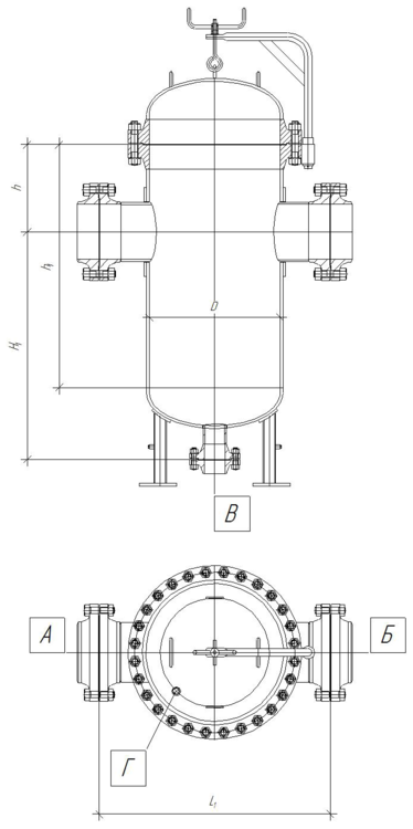 - Исполнение 1 – фильтры со штуцерами и с ответными фланцами (фланцевое соединение)
